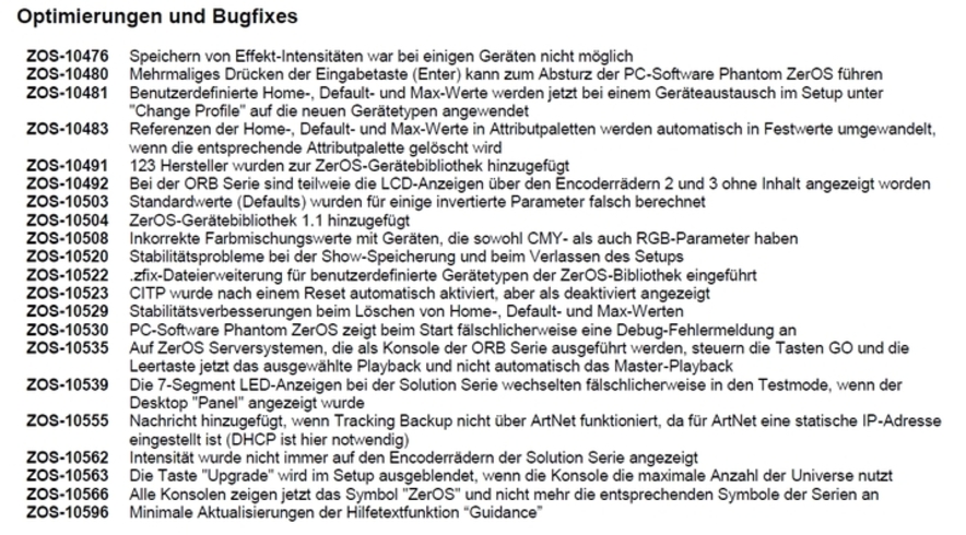 ZerOS 7.9. ist eine neue Softwareversion, die für alle nachfolgend aufgelisteten Konsolen und Server mit dem ZerOS-Betriebssystem empfohlen wird.