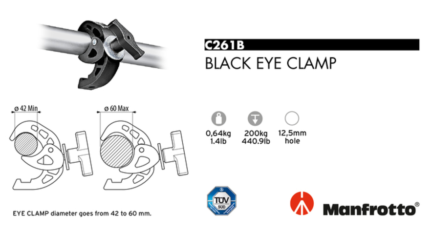 MANFROTTO EYE CLAMP BASIC VERSION, mit Loch für M10 oder M12, max. 200kg