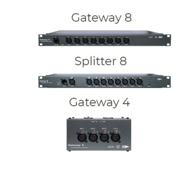 Das Gateway 4 konvertiert vier Ethernet-Universe mit ArtNet oder sACN in DMX512 mit RDM-Unterstützung. Das Gateway 4 kann mit zwei M10-Gewindeaufnahmen überall montiert werden. Eine vertikale oder horizontale Montage an Traversen oder Rohren ist mit Standardklemmen flexibel möglich.