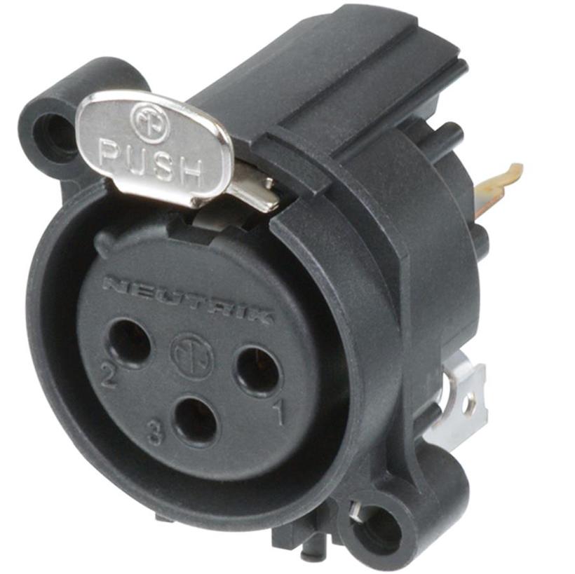 Neutrik 3pol-XLR Chassisbu., Erdung: Gehäuse des Gegenst. mit Pin 1 & Front Panel, vertikale Leiterplattenmontage